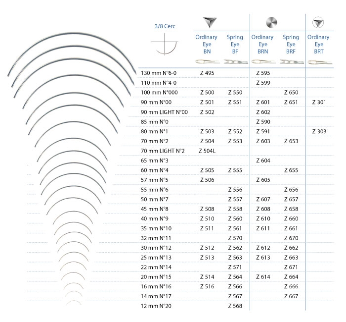 Ace chirurgicale circumferinta 3/8 din otel inoxidabil cu o capacitate de penetrare excelenta.