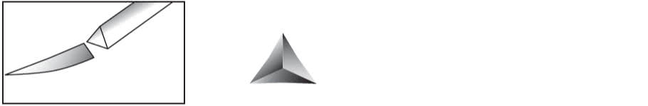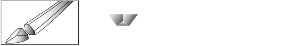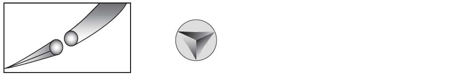 Ac cu varf ascutit triunghiular si corp triunghiular continuu cu toate cele trei muchii extra ascutite pentru o precizie ridicata